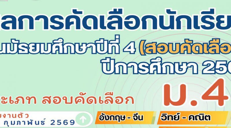 ผลการคัดเลือกนักเรียนเข้าเรียนชั้นมัธยมศึกษาปีที่ 1