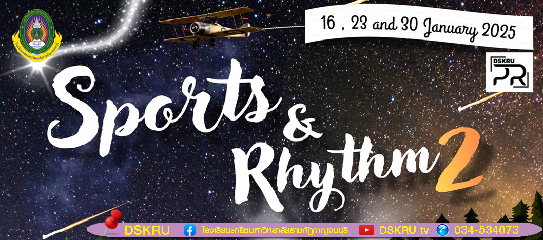 ขอเชิญนักเรียน นักศึกษา คณะอาจารย์และบุคลากรของโรงเรียนสาธิตมหาวิทยาลัยราชภัฏกาญจนบุรี และมหาวิทยาลัยราชภัฏกาญจนบุรี ร่วมสนุกและบริจาครายได้กับกิจกรรม DSKRU Sports & rhythm 2 วันศุกร์ที่ 16, 23 และ 30 มกราคม 2569 ณ โรงเรียนสาธิตมหาวิทยาลัยราชภัฏกาญจนบุรี
