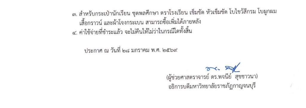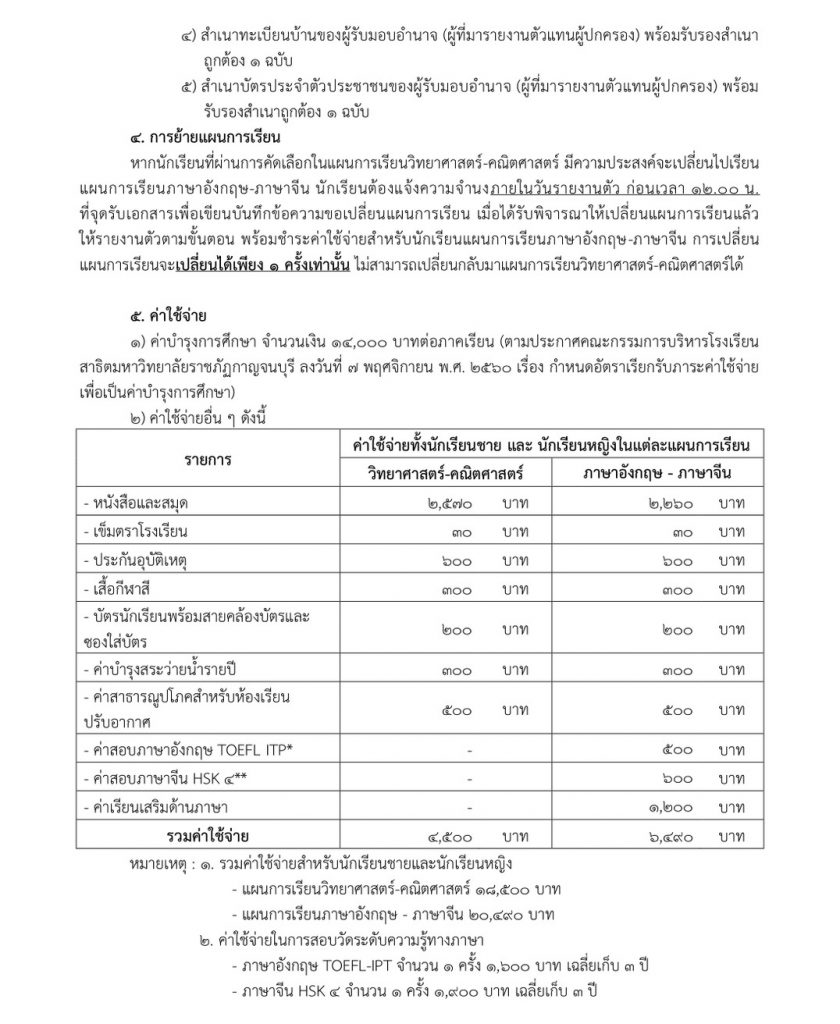 หมายเหตุ : รายงานตัวพร้อมชำระค่าบำรุงการศึกษา และ ค่าใช้จ่ายอื่น ๆ