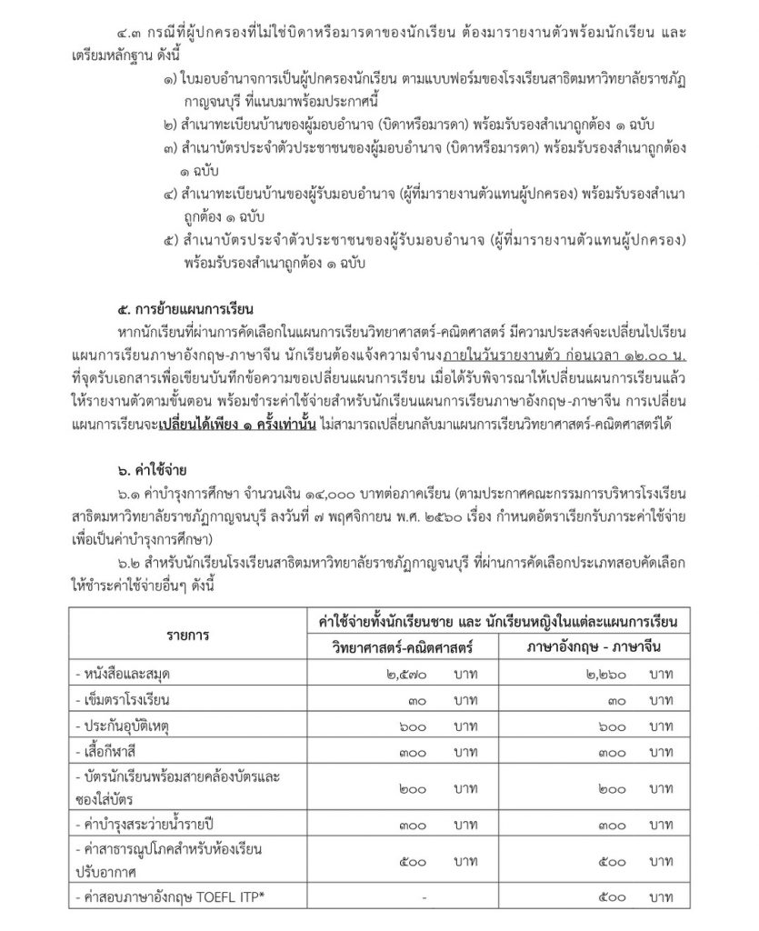 โรงเรียนสาธิตมหาวิทยาลัยราชภัฏกาญจนบุรี ปีการศึกษา 2569