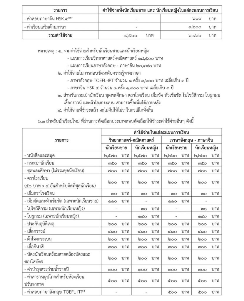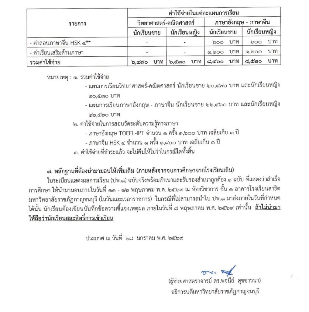 หมายเหตุ : รายงานตัวพร้อมชำระค่าบำรุงการศึกษา และ ค่าใช้จ่ายอื่น ๆ