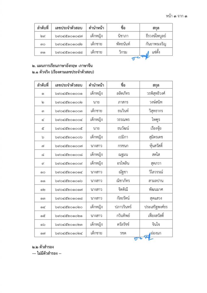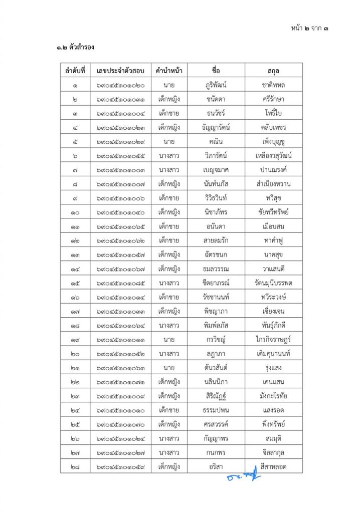 2) ตั้งแต่เวลา 13.00 น. เริ่มเรียกชื่อรายงานตัวตามลำดับรายชื่อในบัญชีรายชื่อแนบท้ายของประกาศฉบับนี้ เฉพาะผู้ที่มารายงานตัวไว้ หากเรียกชื่อผ่านไปแล้วถือว่าสละสิทธิ์ โดยจะเรียกเสริมตัวจริงให้ครบตามจำนวนที่ประกาศรับ