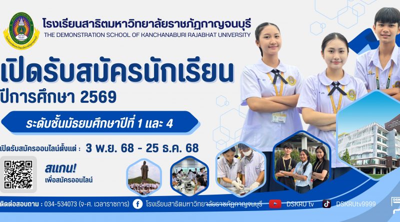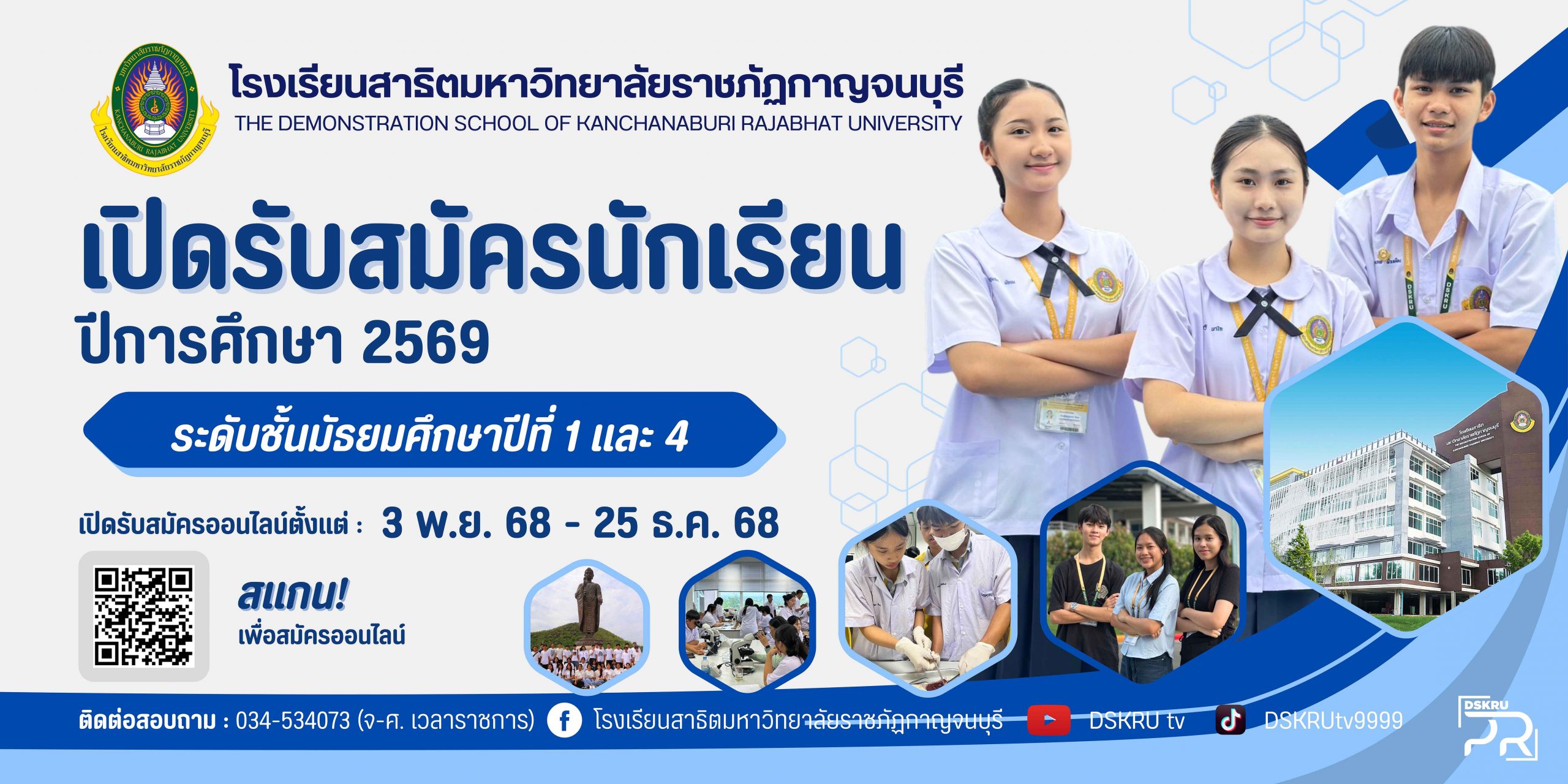 รับสมัครแบบออนไลน์ผ่านทางเว็บไซต์ :โรงเรียนสาธิตมหาวิทยาลัยราชภัฏกาญจนบุรี>> http://dskru.kru.ac.th