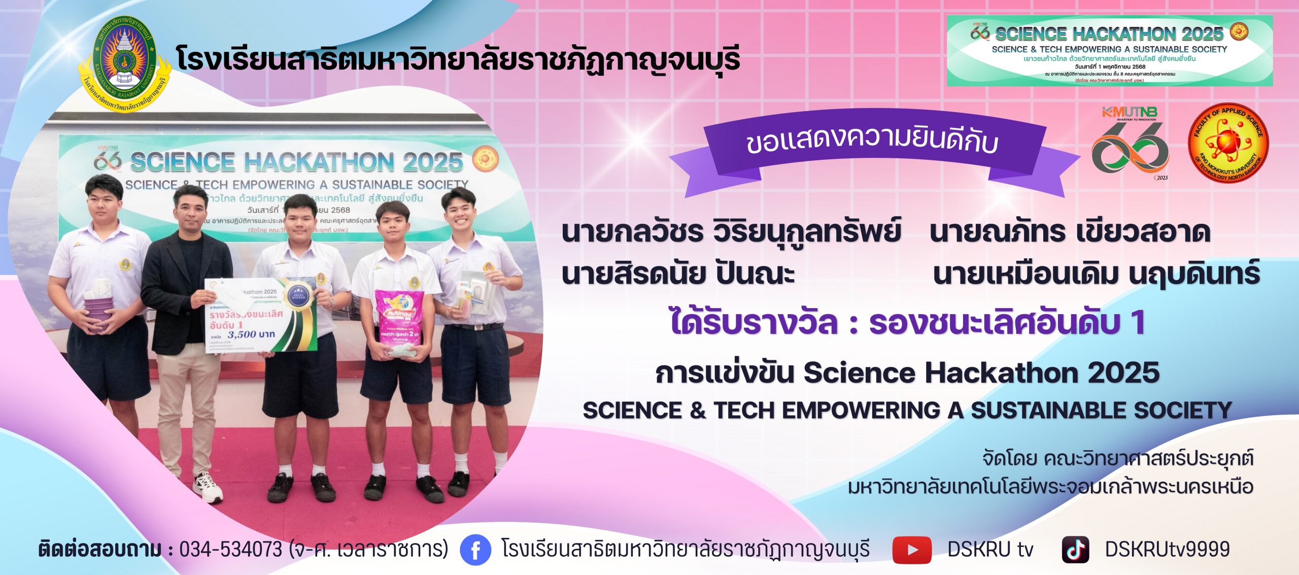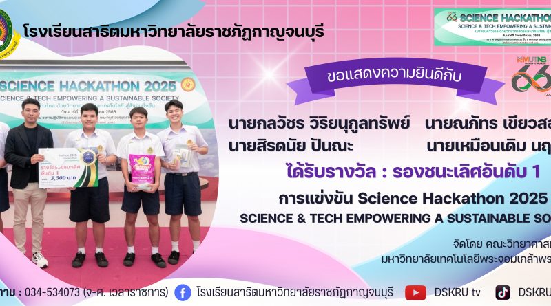 ขอแสดงความยินดี รองชนะเลิศอันดับ 1 Science Hackathon 2025
